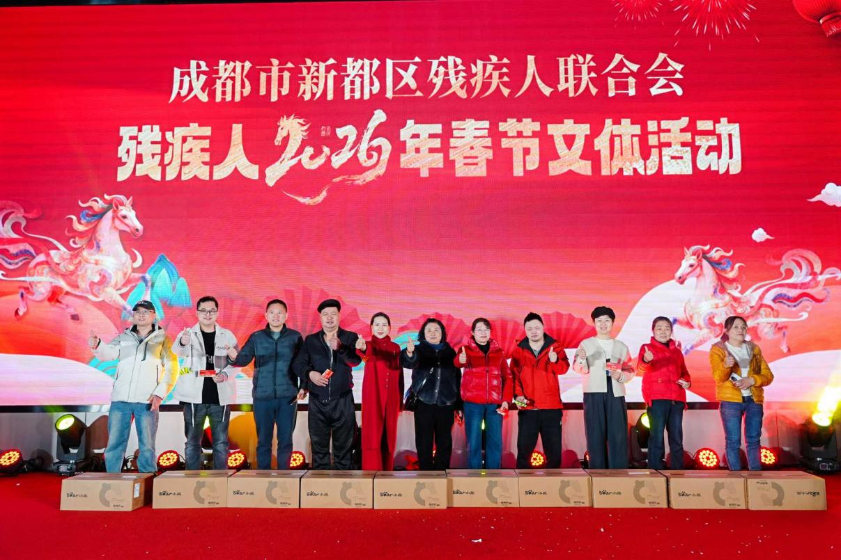| 新春启序,福暖人心。为丰富新都区残疾人群体精神文化生活,传递党和政府的关怀与温暖,营造欢乐祥和、包容共进的春节氛围,近日,区残联精心举办2026年残疾人春节文体活动,以文艺汇演与新春游园相结合的形式,邀请全区300余名残疾人朋友欢聚一堂,共迎马年新春、共话美好未来,在欢声笑语中感受浓浓的年味儿与社会温情。 汇演环节节目丰富多元、亮点纷呈:开场节目《鼓鸣凤舞》以激昂的鼓点点燃全场热情;川剧《变脸吐火》凭借精妙的传统技艺引得叫好声连连;人偶互动节目《金马财神送福》则将新春祝福融入趣味表演,传递出满满的年味;手语舞《有你就幸福》、独舞《世界赠予我的》等节目,由残疾人朋友自编自演,用真挚的情感和灵动的表达,展现了他们乐观向上、自强不息的精神风貌;非遗戏曲《人间好-片段》、魔术《奇迹再现》等节目轮番登场,为现场观众带来了一场视听盛宴,最终全场在歌舞《灯火里的中国》的温暖旋律中落下帷幕。 文艺汇演结束后,新春游园活动热闹开启。现场设置了新春情景拍照打卡、砸金蛋、夹金元宝、新春花束DIY等趣味互动环节。残疾人朋友或在打卡区定格美好瞬间,或在游戏区收获惊喜礼品,或在DIY区亲手制作饱含心意的花束,处处洋溢着欢声笑语。大家在轻松愉悦的氛围中相互交流、增进情谊,不仅收获了节日礼物,更感受到了来自残联组织的贴心关怀。 此次2026年春节文体活动,不仅为新都区残疾人朋友提供了展示自我、交流互动的平台,丰富了大家的精神文化生活,更增强了残疾人群体的归属感、幸福感与自信心。下一步,区残联将继续聚焦残疾人群体需求,持续开展适性强、形式多样的文体活动,不断完善残疾人公共文体服务,用实际行动传递关怀与温暖,助力残疾人朋友更好地融入社会,携手共赴平等、融合、共享的美好明天。 |