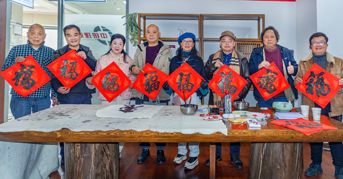 (乙巳岁尾,丙午年前,新都社区教育刘昌力名师工作室开展以“墨香迎马岁 春联送万家”为主题赋能2026新春文化惠民的免费送春联公益活动,组织书法家走进校园、社区、乡村,为群众送上新春文化祝福。) 墨涛迎雨润香城。 丹楮破新晴。 铁钩卷作千祥帖, 腕底风、漫涌乡情。 禧字倒悬帘角, 对红飞上窗棂。 垂髫凝目辨锋轻。 翁媪笑纹生。 千家门换桃符夜, 有骅骝、徐踏云行。 惟见人间星火, 已连霄汉荧荧。 |